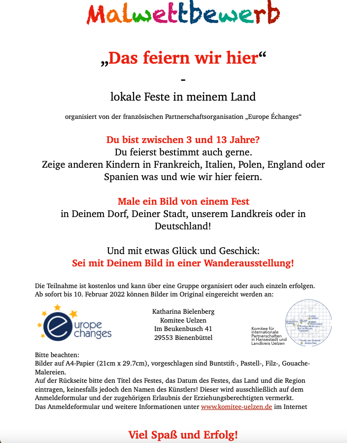 Zeige anderen Kindern in Frankreich, Italien, Polen, England oder Spanien was und wie wir hier feiern.